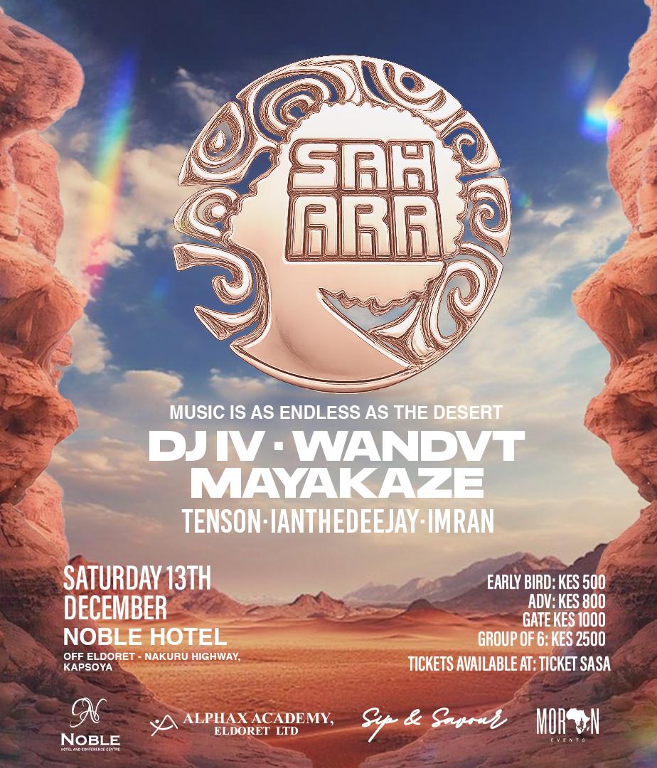 This edition features a powerful lineup including DJ IV, Wandvt, Mayakaze, Tenson, Ian The Deejay, and Imran, delivering a seamless blend of Afrohouse, electronic grooves, and high-vibration soundscapes. Expect stunning stage design, curated cocktails, artistic expression, and a warm community atmosphere that has made Sahara Eldoret’s home of Afro-centric nightlife.