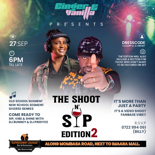 preciating the seamless transition of musical influences through time. Join us for a captivating experience where the golden hits of previous decades meet the soulful rhythms of modern eras,creating a harmonious ginger spice and vanilla smoothness. On the 1sand 2s will be Dj Bunney254 and Dj Presyce.
