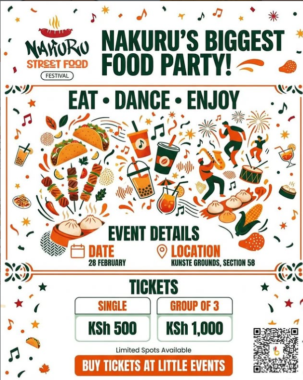 Whether you’re coming for nyama choma, street bites, or just a chilled hangout with friends, this festival promises a lively atmosphere perfect for food lovers and weekend explorers alike. Expect sizzling grills, creative street eats, and a vibrant crowd ready to celebrate Nakuru’s growing food culture.