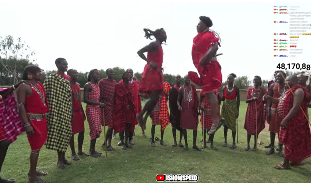 One of the most talked-about moments from the Kenya leg was Speed taking part in a Maasai Adumu (traditional jumping) challenge near the Maasai Mara area. He competed with some of the community’s best jumpers, celebrated his performance on stream, and was given an honorary title—“Nyangulo”—by elders.