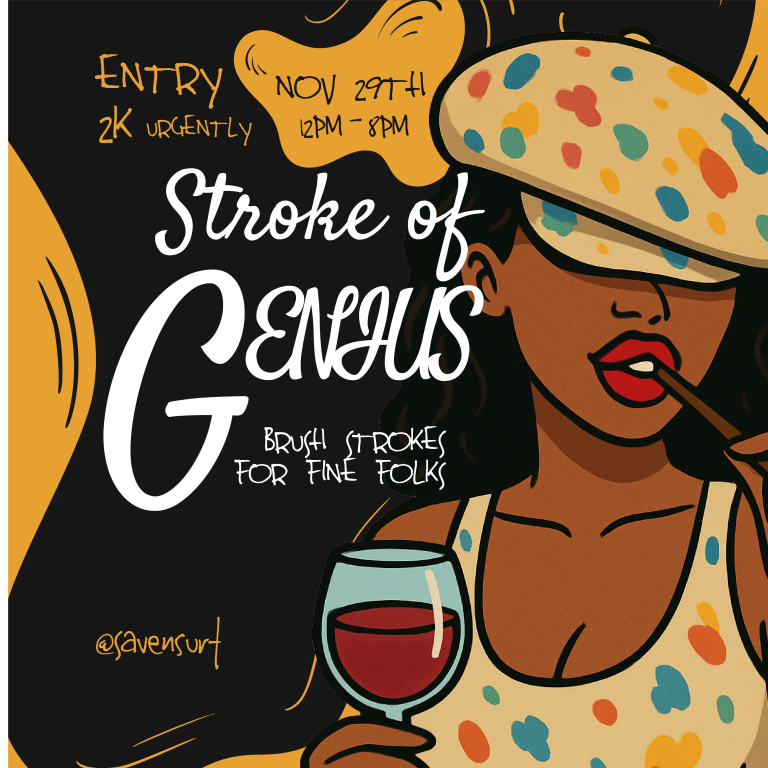 Whether you’re a seasoned artist or picking up a brush for the first time, Stroke of Genius is about expression over perfection. Come solo or with friends, sip, paint, laugh, and let the vibes do the rest.