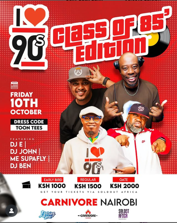 preciating the seamless transition of musical influences through time. Join us for a captivating experience where the golden hits of previous decades meet the soulful rhythms of modern eras,creating a harmonious ginger spice and vanilla smoothness. On the 1sand 2s will be Dj Bunney254 and Dj Presyce.